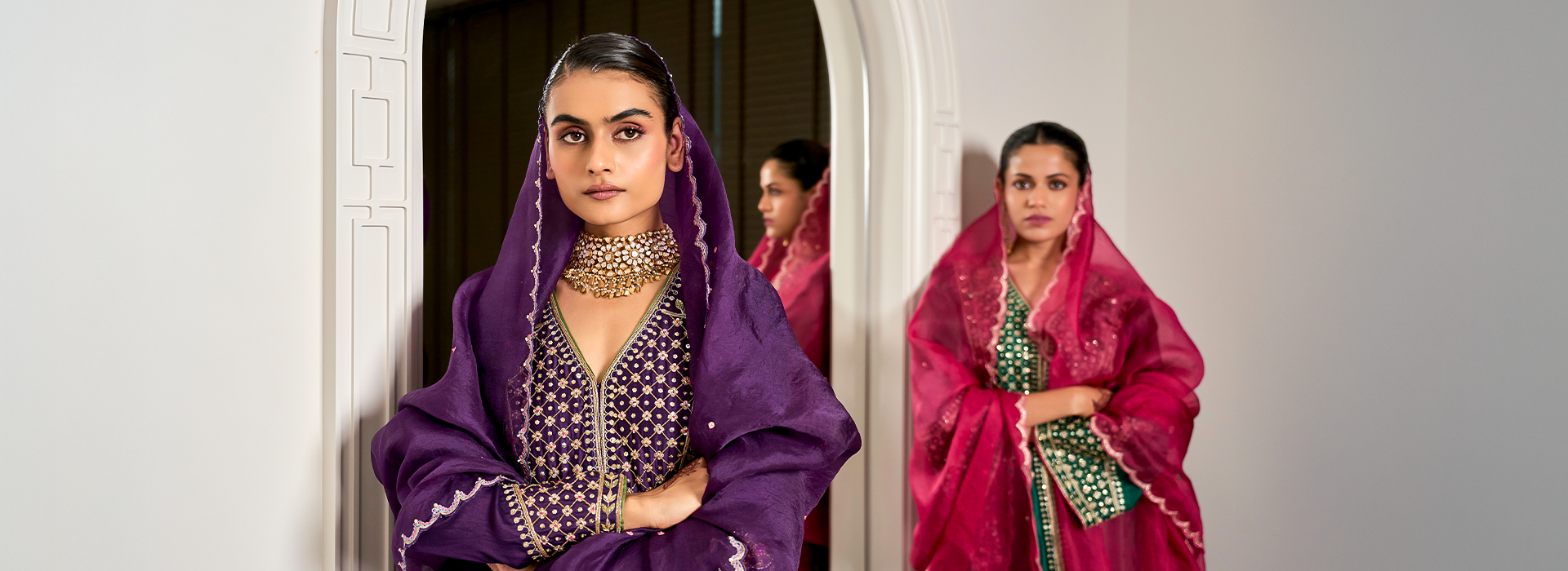Our collections are meticulously crafted using premium fabrics and intricate detailing, offering timeless silhouettes that empower women to express their individuality with grace and confidence.