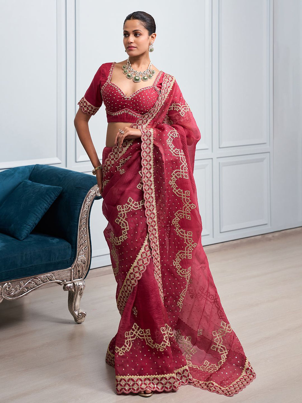 Absolutely loved this saree ensemble! The fusion of traditional charm with a modern twist is beautifully done. The pista green blouse is a showstopper.